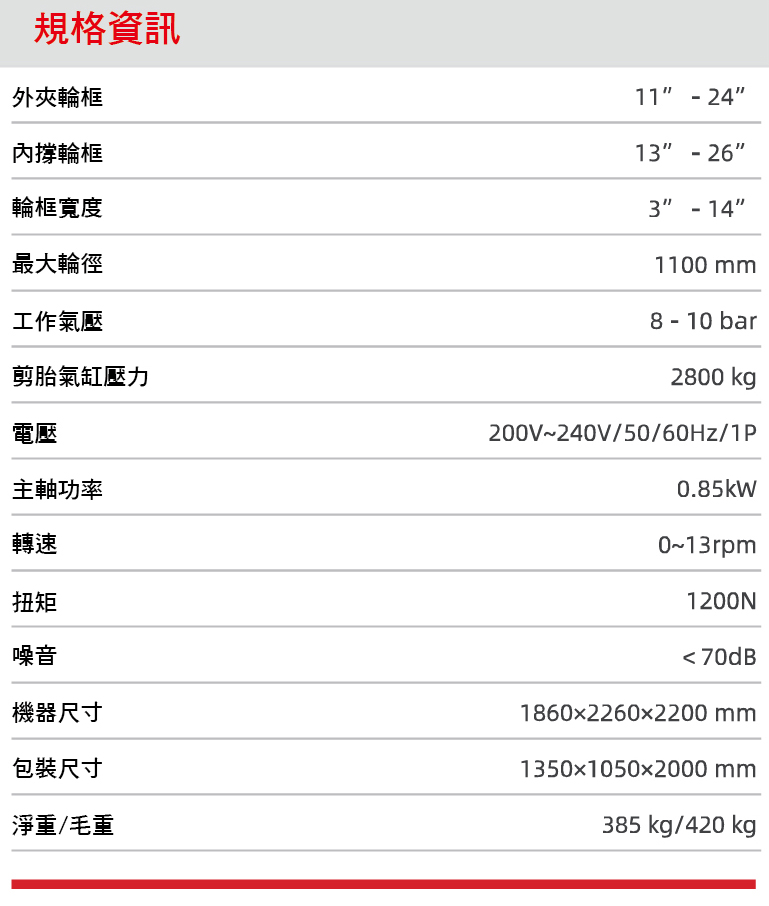 • 新式ZD05免翹棒採用氣動控制,操作簡單方便 • 新式ZD05免翹棒裝置來自義大利的專利技術,經過歐洲市場多年測試,適合各種輪胎拆裝 • 標配200大氣缸配合可變力矩剷刀,剪胎力道更強,適合各種硬壁胎及防爆胎 • 採用55方四方軸,加長六方套整台拆胎機強度更高 • 立柱採用5MM鋼板雙折彎結構,強度高使拆裝輪胎不變型,保護輪胎及輪框安全 • 配置AL390H輔助手臂,可以操作壓胎塊對準壓胎,三點式壓胎提高設備拆裝效率